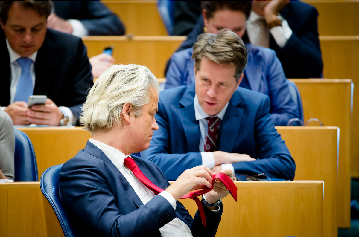 Лидер голландских ультраправых Герт Вилдерс (на переднем плане) и Мартин Босма (позади) в Гааге / Фото Bart Maat / ANP via BelgaImage