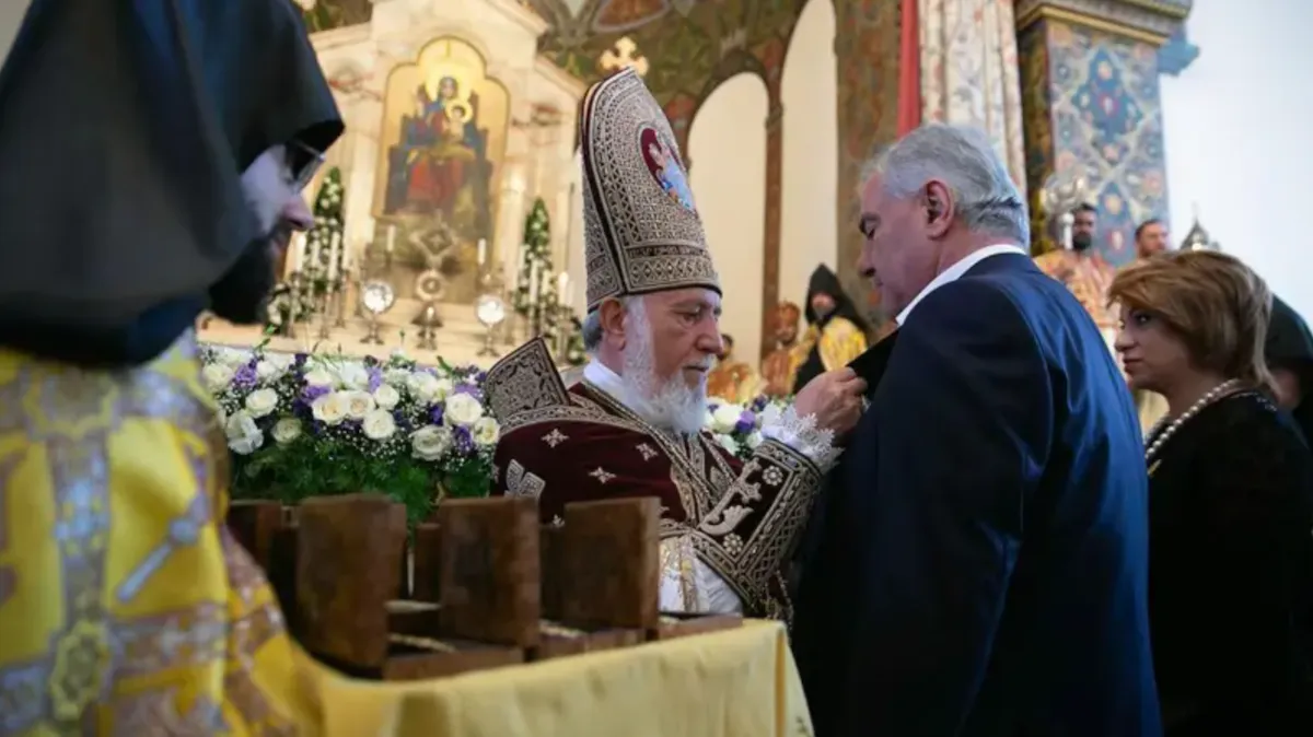 В сентябре 2024 года католикос Гарегин II наградил Самвела Карапетяна новым высшим орденом Армянской Апостольской церкви – "Сурб Эчмиадзин" / Фото Tashir