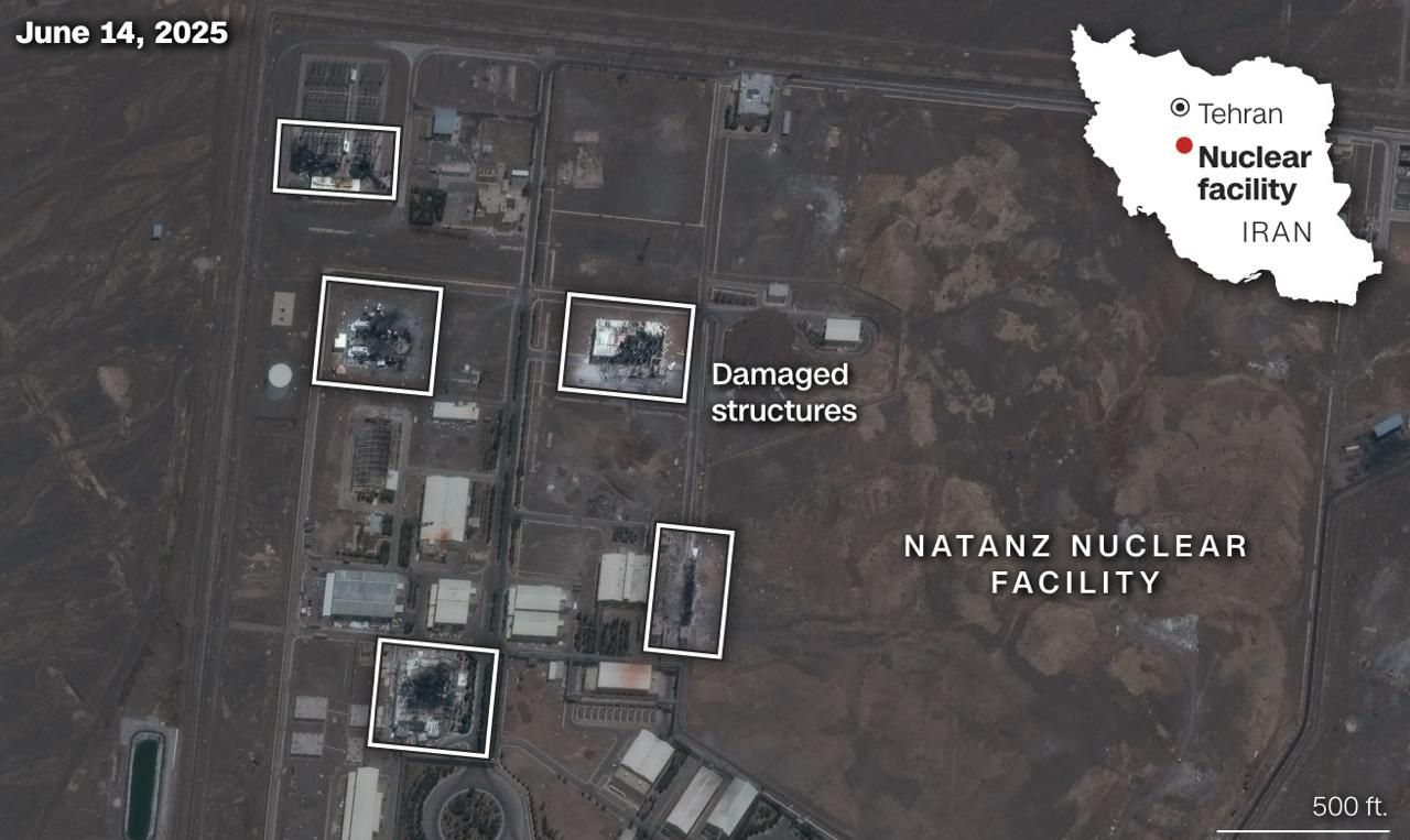 - Спутниковые снимки показывают видимые поверхностные повреждения объекта в Натанзе.