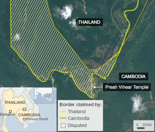 Современные бои между Таиландом и Камбоджей – это не только стычки за несколько километров пограничного леса. В центре конфликта – храм Прэахвихеа, жемчужина кхмерской архитектуры 11 века, ставшая политической бомбой замедленного действия. Главная проблема – географическое положение храма. Он размещен на самой границе, и именно это превратило его в символ тянущегося уже десятки лет спора между Бангкоком и Пномпенем.
