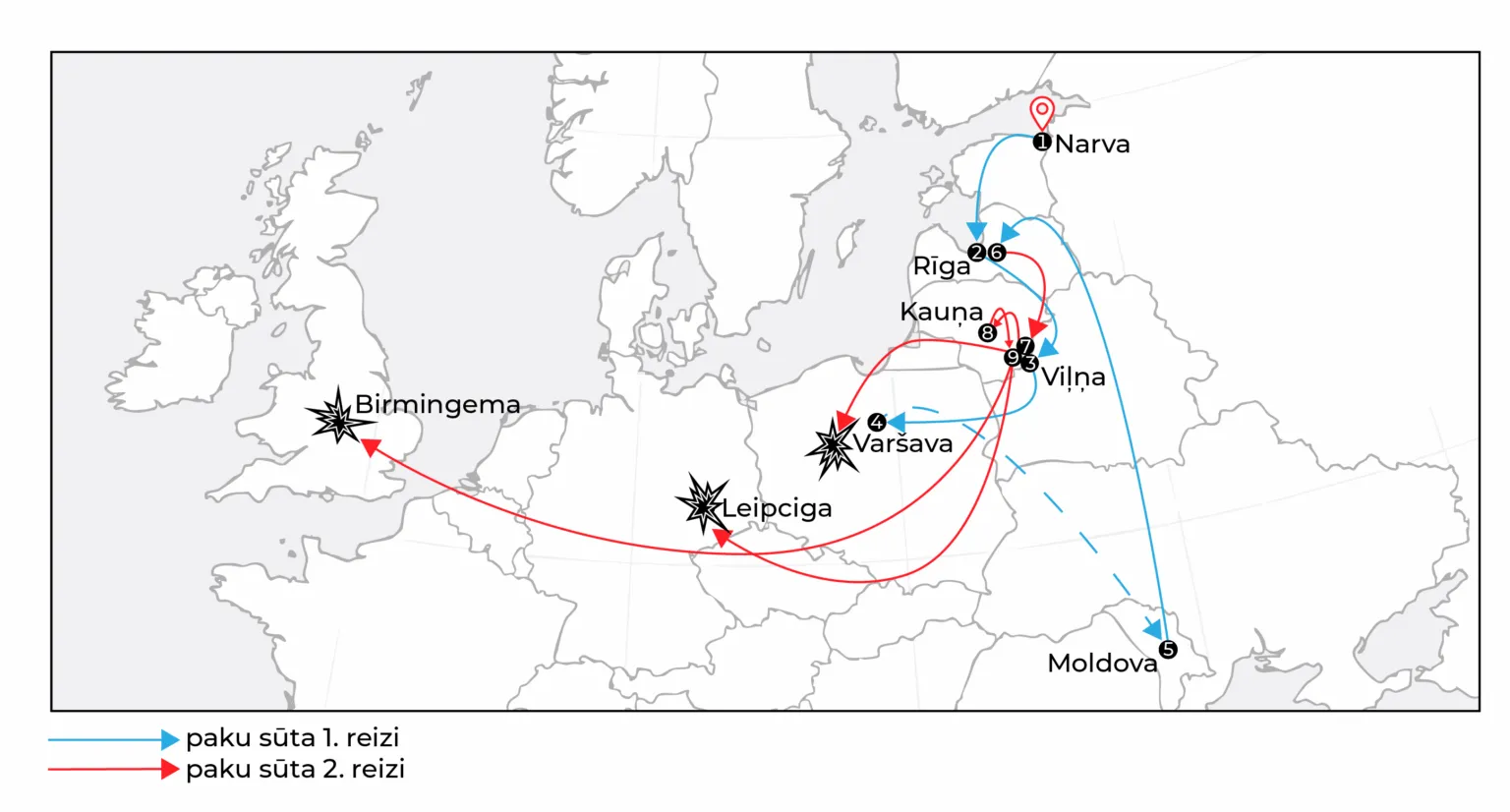 В июле 2024 года гражданин Литвы совместно с другими людьми передал компаниям DHL и DPD из Вильнюса в разные страны Европы четыре посылки. Они содержали самодельные взрывные устройства. Планировалось, что это оружие сработает на территории четырех разных стран.