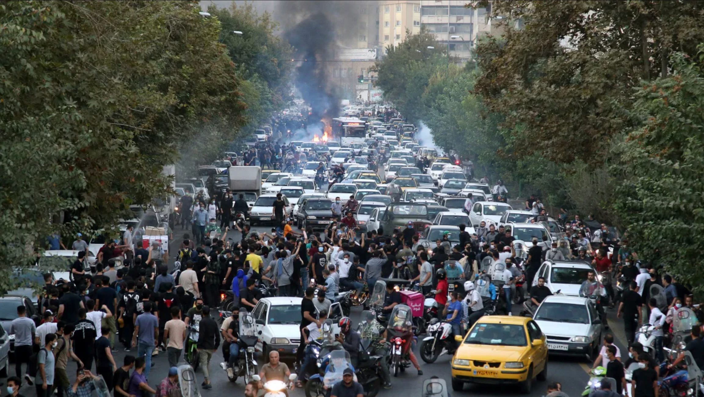 Иранские протестующие вышли на улицы после убийства полицией Махсы Амини, сентябрь 2022 года / Фото Associated Press