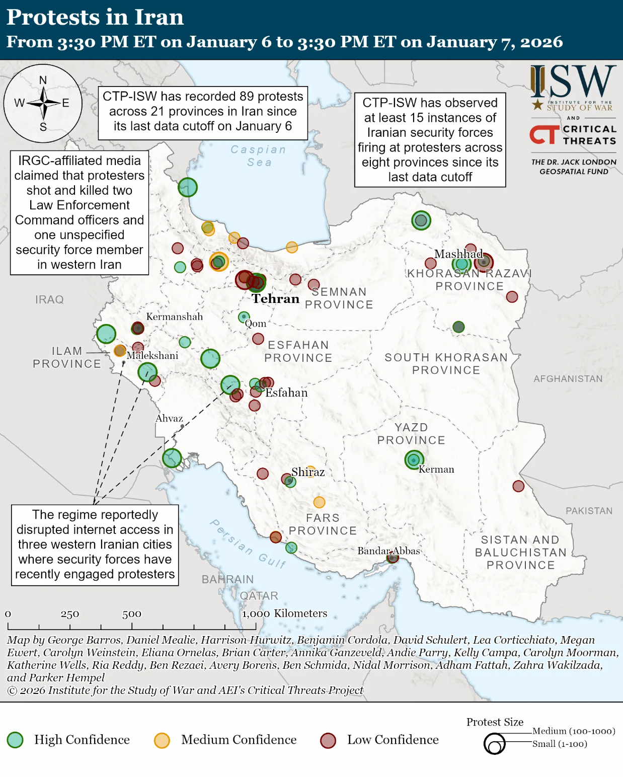 Протесты охватили почти все регионы Ирана, с особой концентрацией в крупных городах / Источник ISW