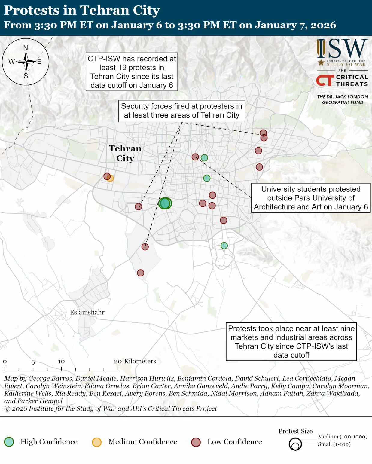 Карта протестов в иранской столице – Тегеране / Источник ISW