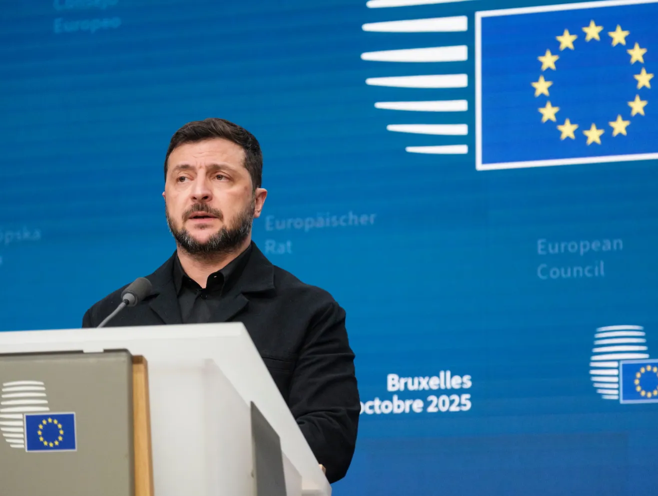 Владимир Зеленский выступает на саммите Евросоюза, октябрь 2025 года / Фото Getty Images