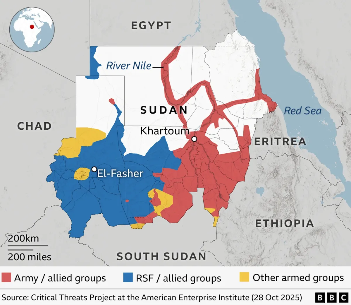 Фактически миллионы суданцев оказались в заложниках у боевиков, что превратили и без того проблемную страну в тот самый Failed State, без надежды и особых шансов на спасение. Зато боевики не собираются останавливаться – в конце октября 2025 года RSF открыли новую позорную страницу войны, начав резню мирного населения в городе Эль-Фашер в Северном Дарфуре.