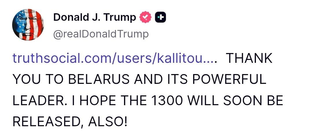 Спасибо Беларуси и ее "мощному" лидеру. Надеюсь, что 1300 также вскоре будет освобожден,