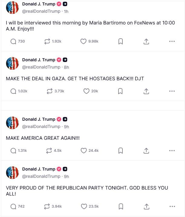 Последние сообщения Дональда Трампа в Truth Social / Скриншот 24 Канала