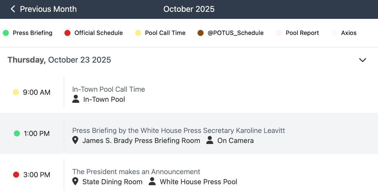 К тому же за два часа до этого, а именно в 20:00, начнется пресс-конференция пресс-секретаря Белого дома Кэролайн Левитт.