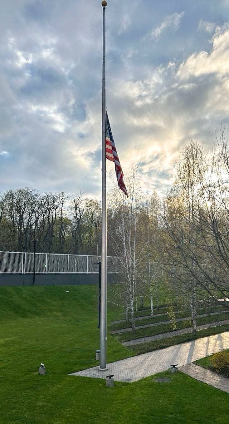 Приспущенный флаг у посольства США в Киеве / Фото с Twitter Бриджит Бринк