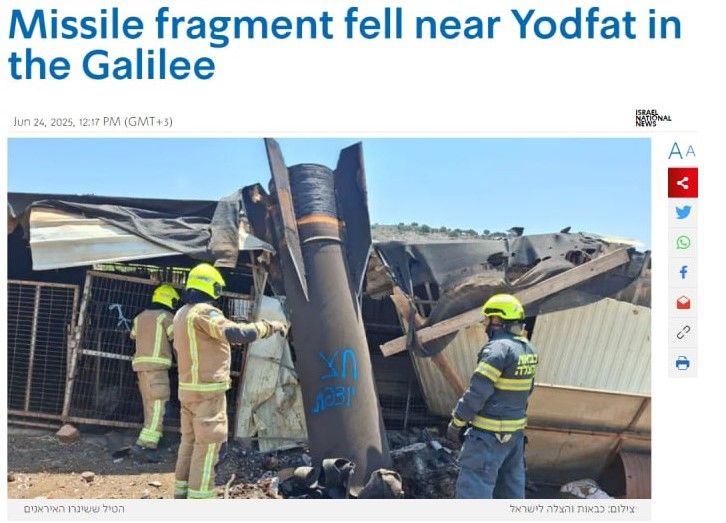 Несмотря на заявления Дональда Трампа о заключенном прекращении огня взрывы на Ближнем Востоке не исчезли. Израильские СМИ опубликовали фото ракеты, которой, предположительно, атаковал Иран.