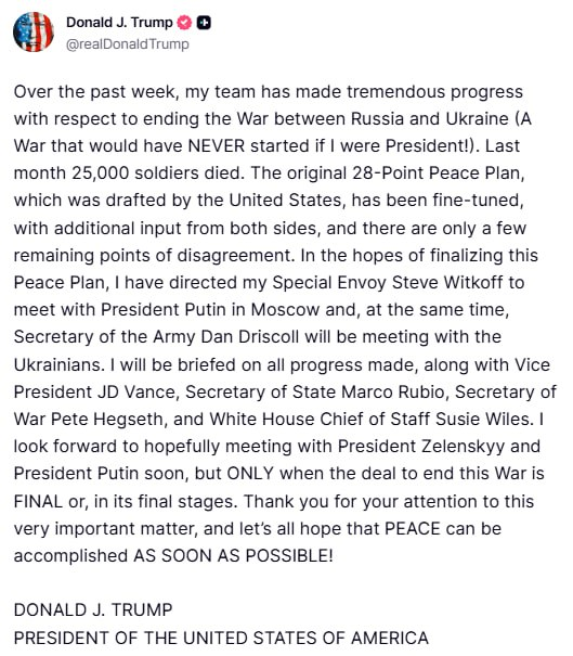 Пост Трампа в Truth Social / Скриншот
