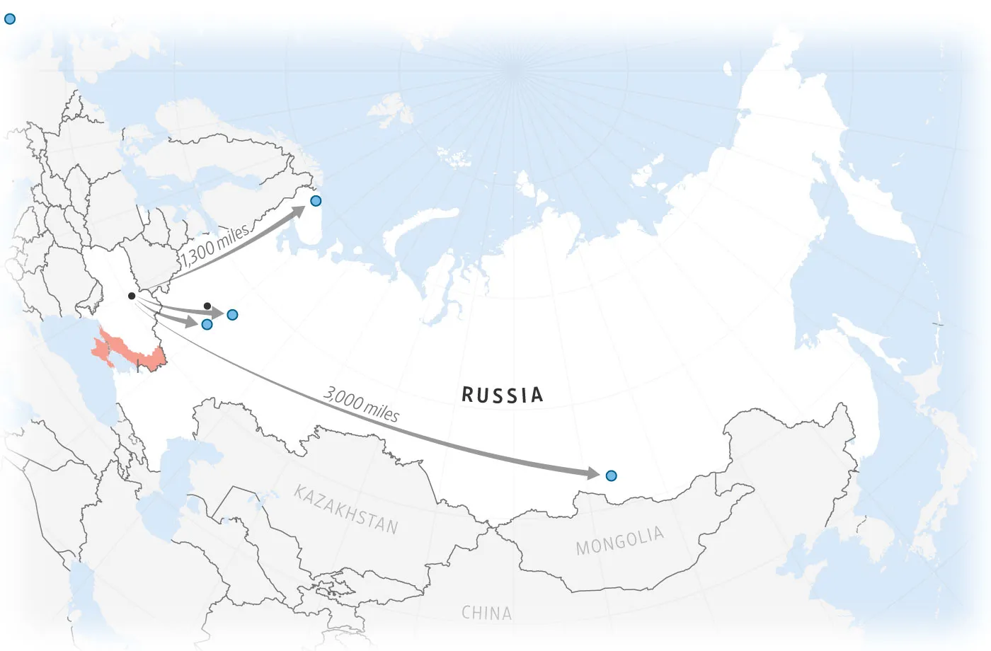 Відстань від України до уражених дронами аеродромів Росії / Інфографіка The Wall Street Journal