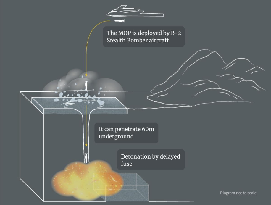 Моделювання роботи бомби GBU-57A/B, яку США скинули на об'єкт у Фордо / Джерело AFP