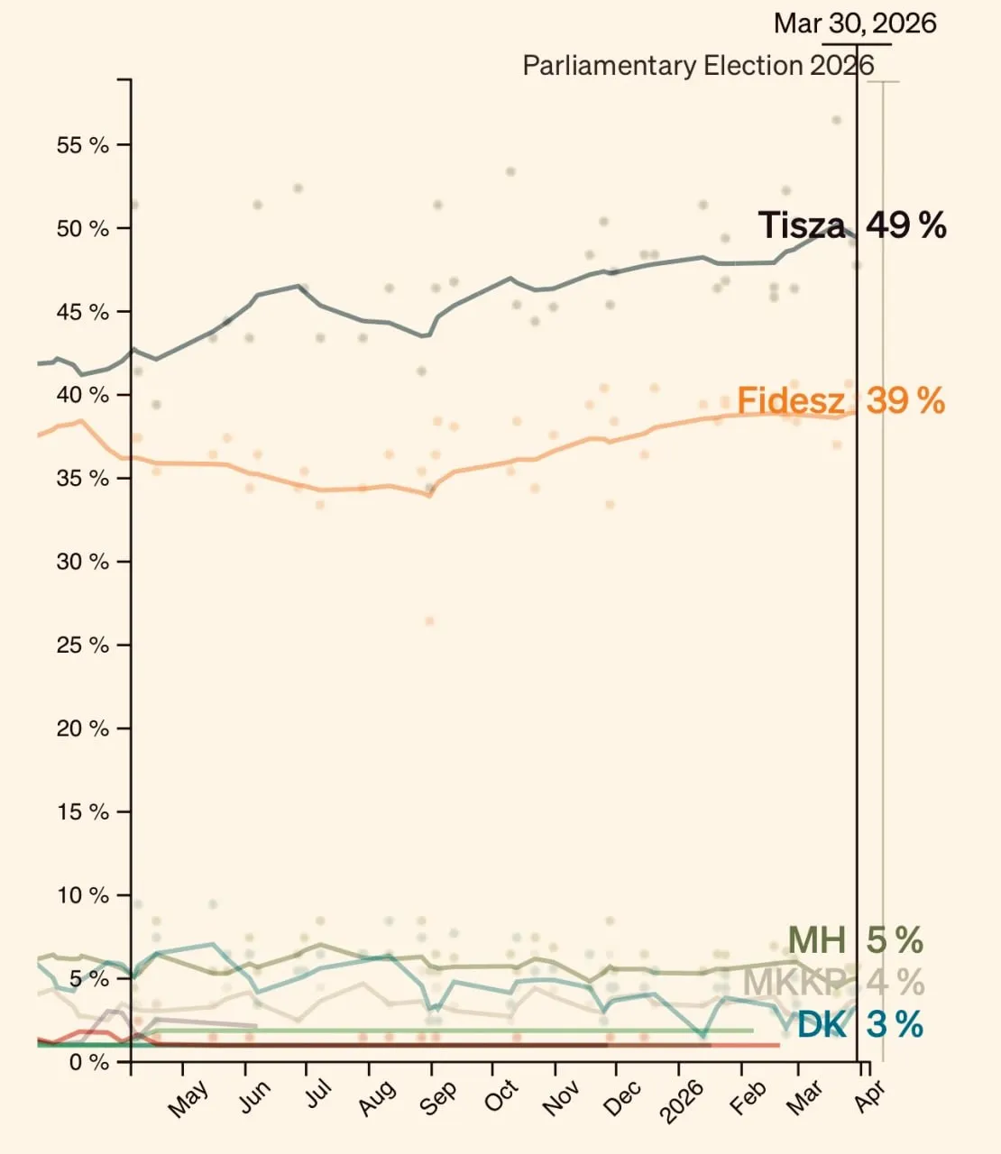 Як бачимо, попри оптимізм європейських ЗМІ, велика перемога з відривом або навіть просто перемога "Тисі" не гарантована. Тому цій політсилі та іншим потенційним переможцям доведеться зважати на Орбана та його капризи. А якщо до парламенту потраплять ультраправі з партії "Наша Батьківщина" (Mi Hazánk Mozgalom – це фактичний ребрендинг іншої ультраправої, але менш майстерної в популізмі партії "Йоббік", що нині балансує на межі 5%), то орбаністи можуть навіть розраховувати на золоту акцію.