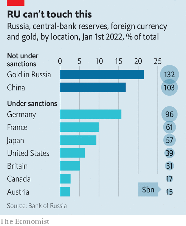 Кількість російських суверенних активів у різних країнах Європи та Північної Америки / інфографіка The Economist