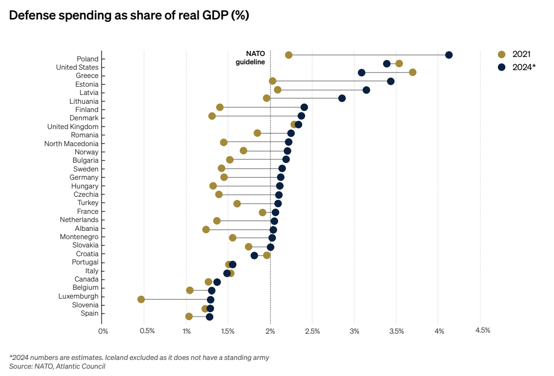 Сукупні витрати ЄС у 2024 році на оборону склали 326 мільярдів доларів, що на 30% більше, ніж у 2021 році