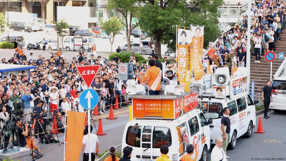 Лідер партії "Сансейто" Сохей Камія виступає з передвиборчою промовою, липень 2025 року / Фото Yoshio Tsunoda / AFLO / IMAGO