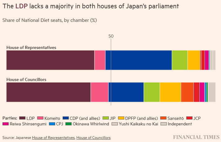ЛДП втратила більшість в обох палатах парламенту Японії / Інфографіка Financial Times