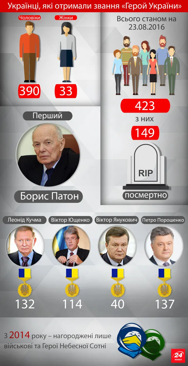Загалом за всю історію найвищим званням відзначено 423 особи, з них 149 – посмертно.