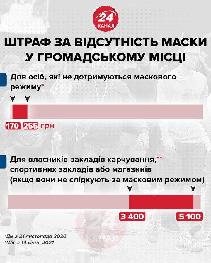 Які штрафи за відсутність маски у громадських місцях / Інфографіка 24 каналу