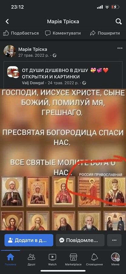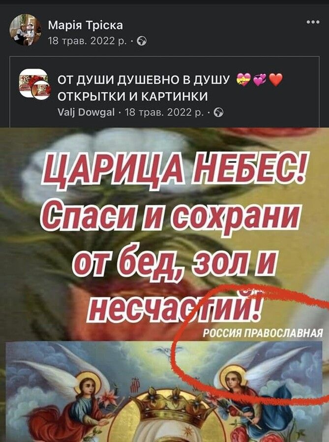 На її сторінці у соцмережах багато дописів російською мовою, а також репости з груп Московської церкви.