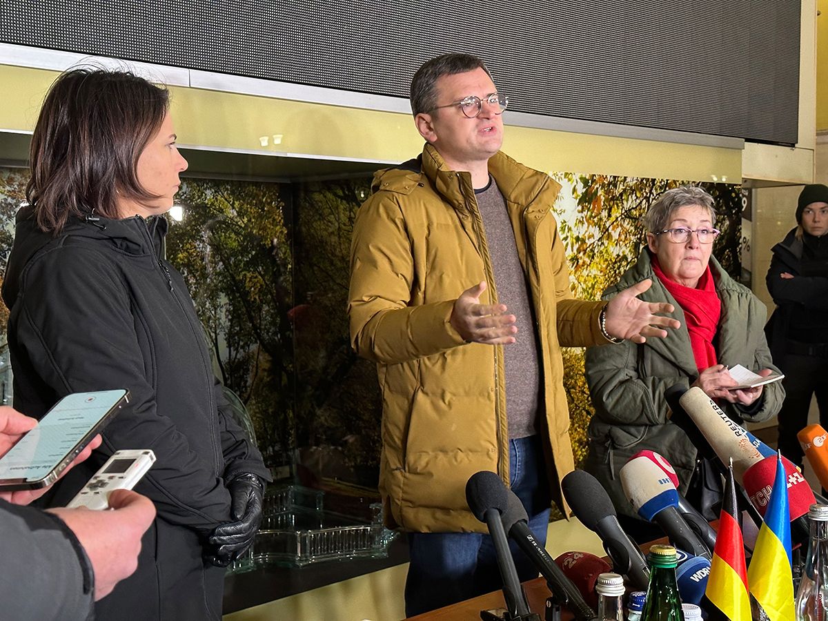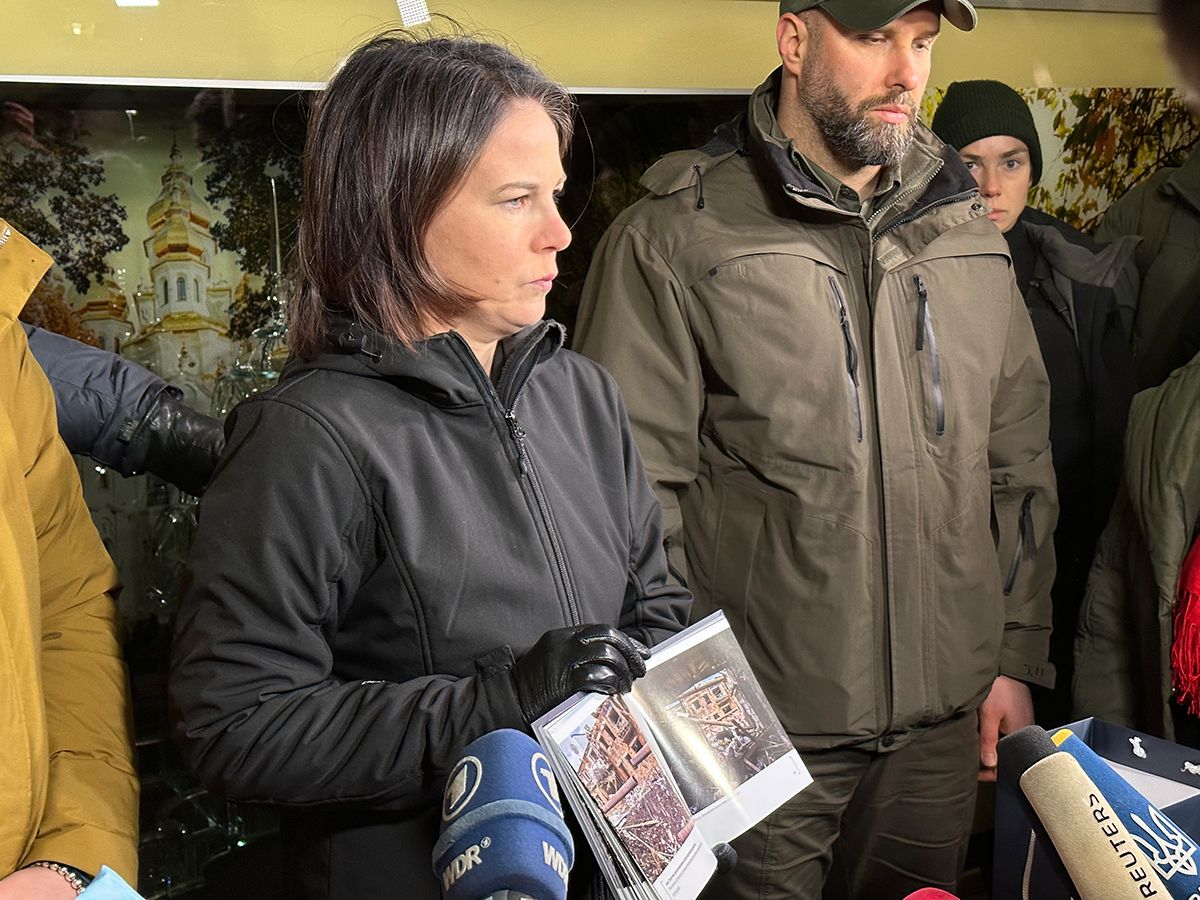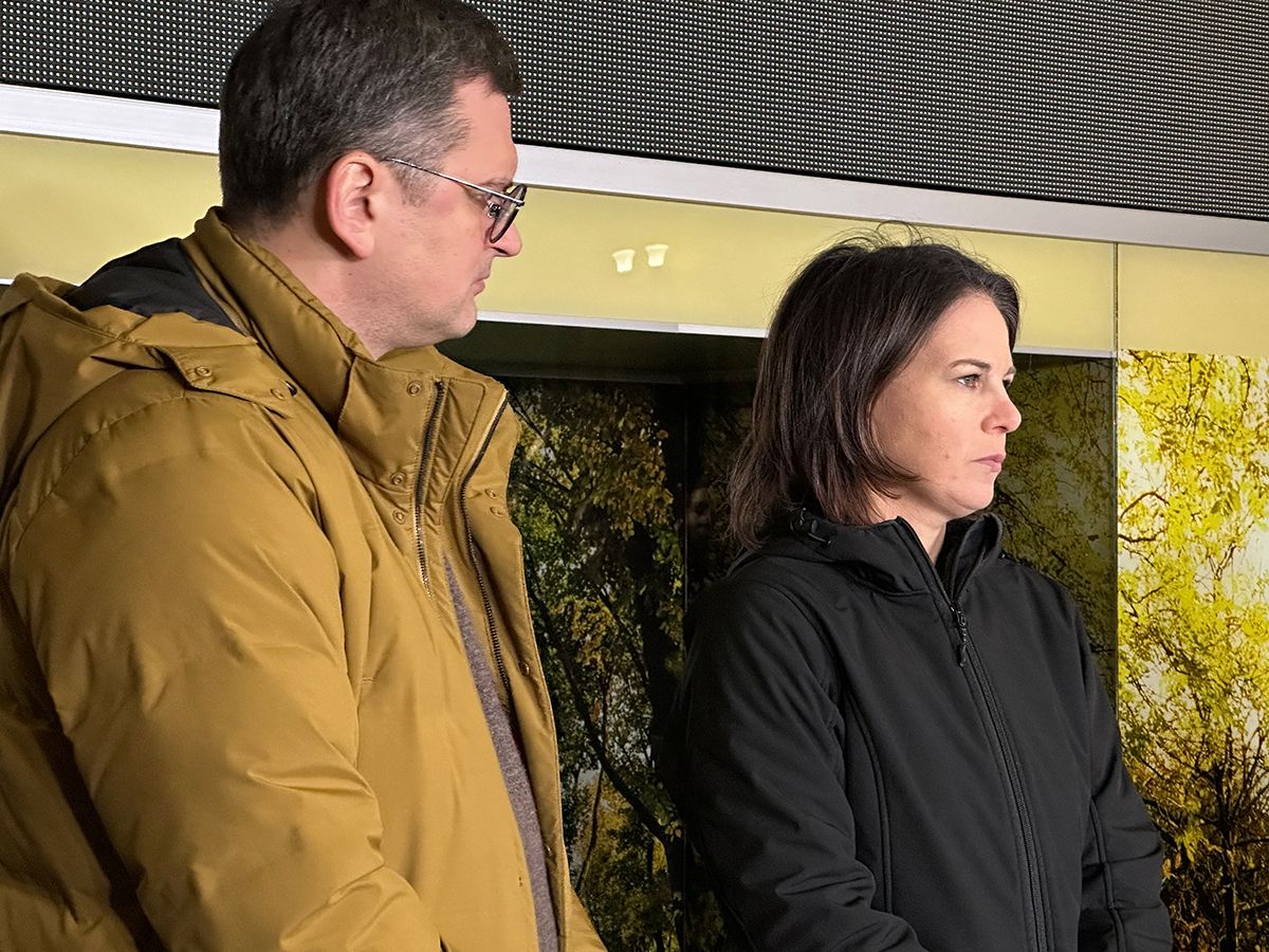 Під час візиту, який спочатку тримався у секреті з міркувань безпеки, Бербок супроводжували міністр закордонних справ України Дмитро Кулеба та посол України у Німеччині Олексій Макєєв.