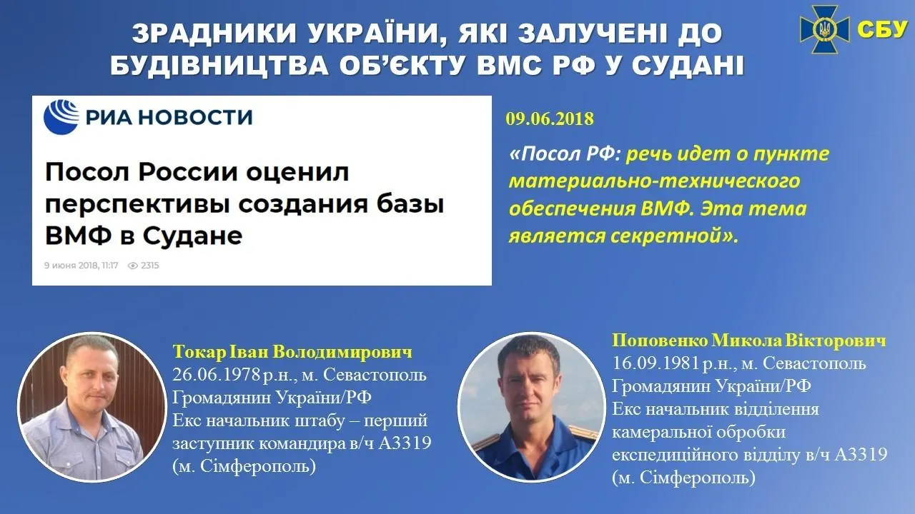 Що стосується інформації про офіцерів ВМФ – вони не є співробітниками ПВК "Вагнера". Ми просто говоримо, що крім "вагнерівців" в Судані зафіксовано військову російську присутність. Зокрема, мова йде про будівництво пунктів військово-технічного забезпечення ВМФ Росії, до якого залучені колишні військовослужбовці ВМС України, які зрадили нашу країну і сьогодні служать на Чорноморському флоті.