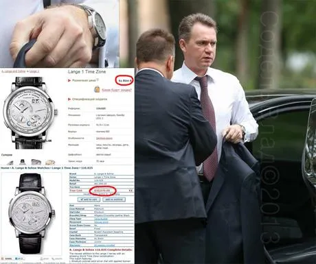 На руці голови ЦВК можна побачити годинник німецької марки A. Lange & Sohne (модель Lange 1. Time Zone).
