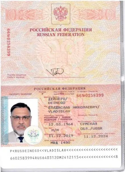 Копія закордонного паспорта РФ Владислава Дейнего / Фото "РБК-Україна"