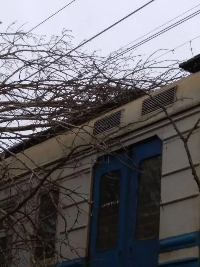 Дерево впало на електричку на Львівщині/ фото з соцмереж