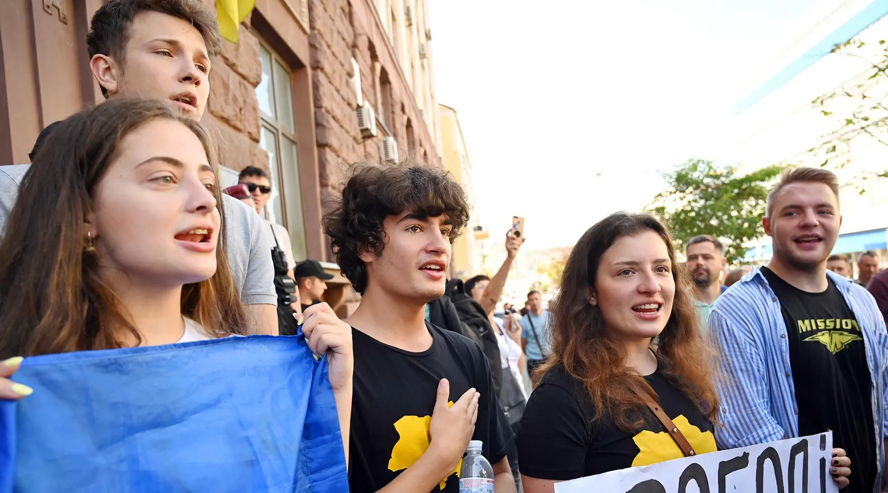 Під час допиту під ДБР на Порошенка очікували його прихильники, серед яких можна було помітити його дітей - сина Михайла і дочок Олександру та Євгенію.