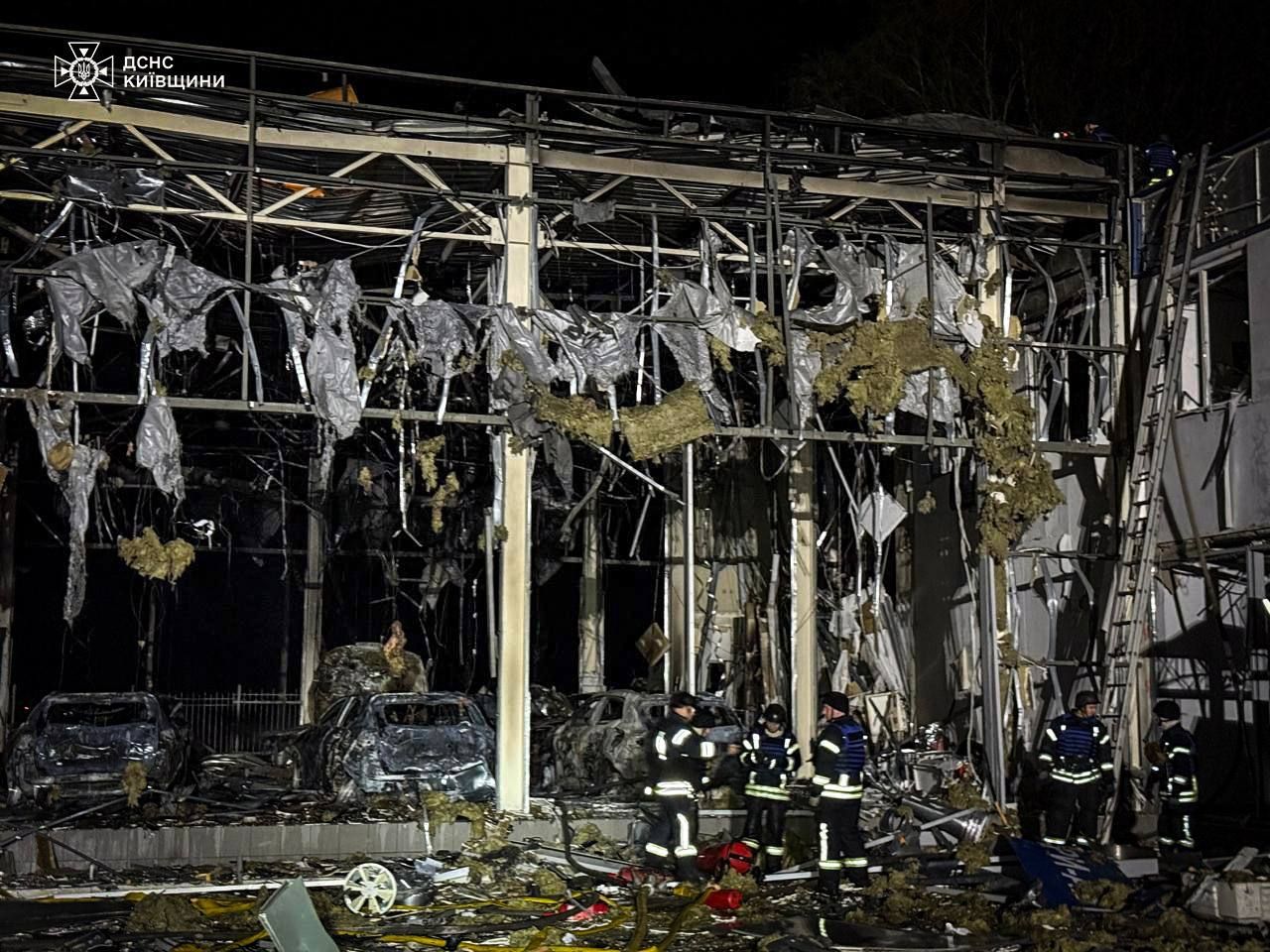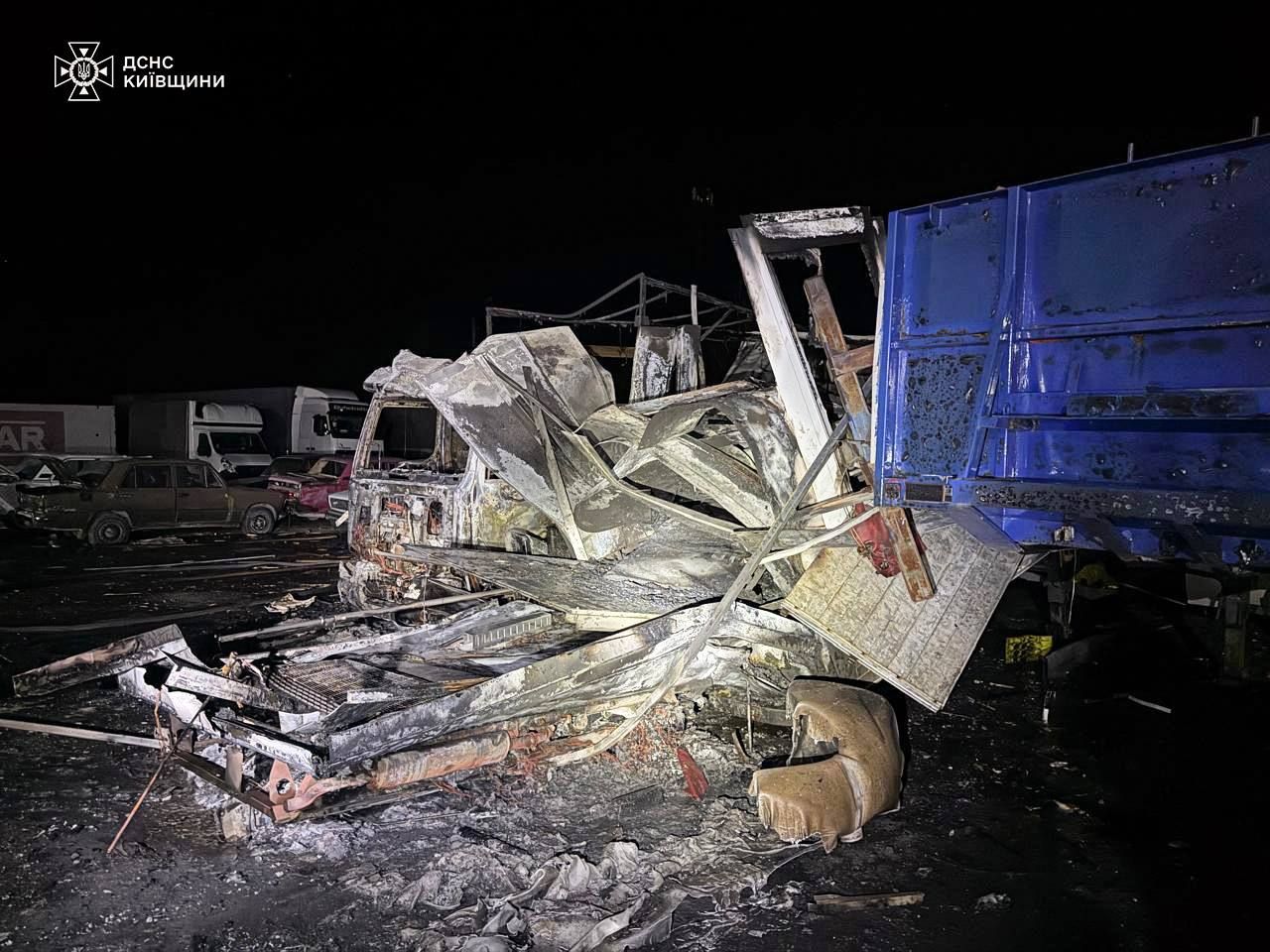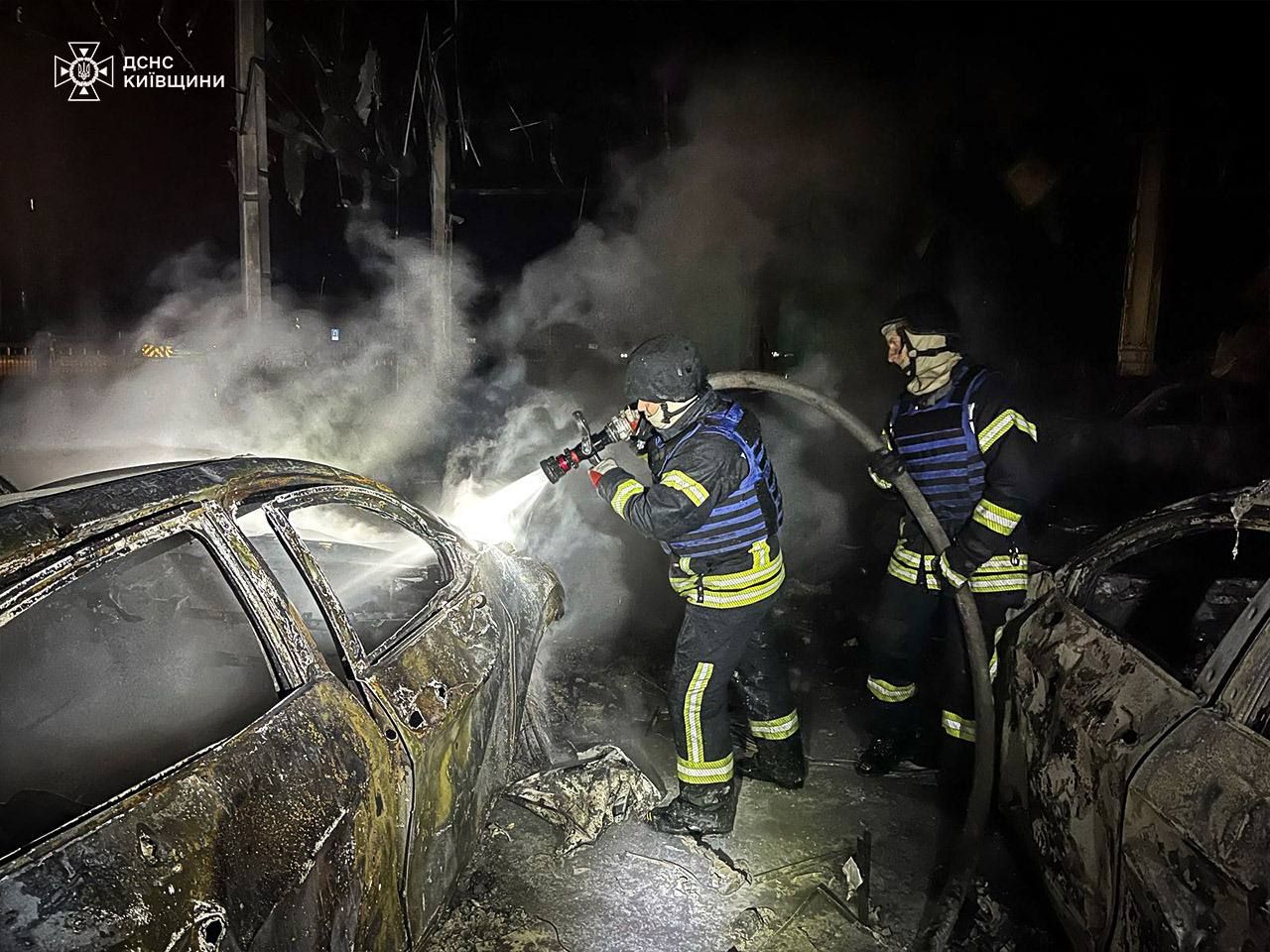 Унаслідок ворожої атаки в Броварському районі пошкоджені СТО, АЗС та 2 адміністративні будівлі підприємств. Ліквідована пожежа автосалону та автомобілів на парковці. Знищено 6 легкових автомобілів і 2 вантажівки. Пошкоджено 12 автомобілів, автобус і 8 вантажівок,