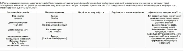 Право користування Вікторія Кравчук отримала у 2011 році, а власником квартири є Генеральна прокуратура.