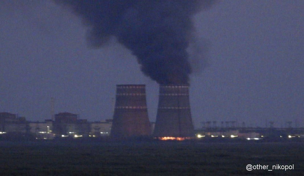 Росіяни підпалили градирню ЗАЕС / Фото з телеграм-каналу Євгена Євтушенка