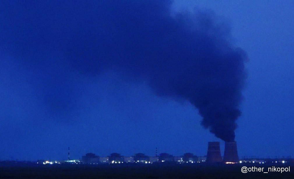 Дим від пожежі в градирнях ЗАЕС / Фото з місцевих телеграм-каналів