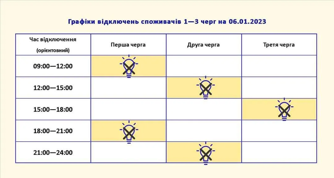 З’явилися графіки відключень електроенергії 6 січня: