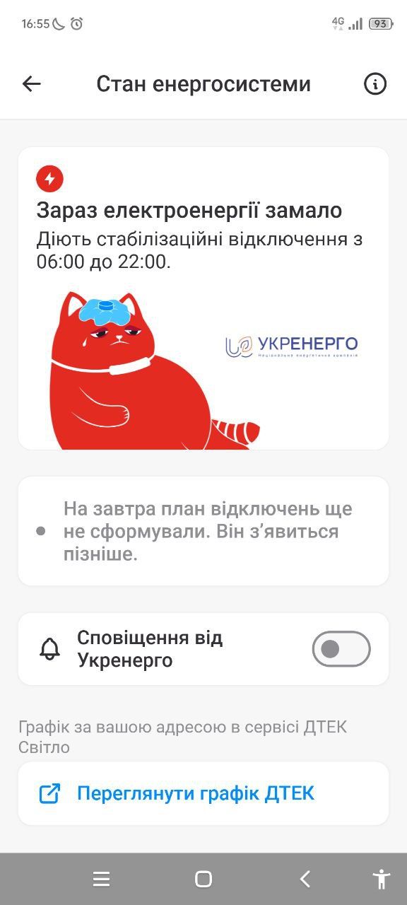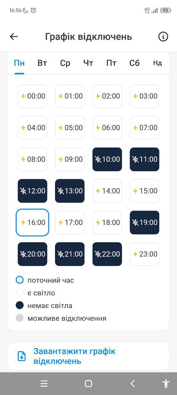 Ще простіший вигляд новий графік має у застосунку Yasno.