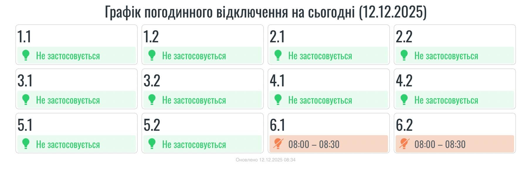 У п'ятницю, 12 грудня, на Івано-Франківщині, як і раніше, діятимуть графіки погодинних відключень.