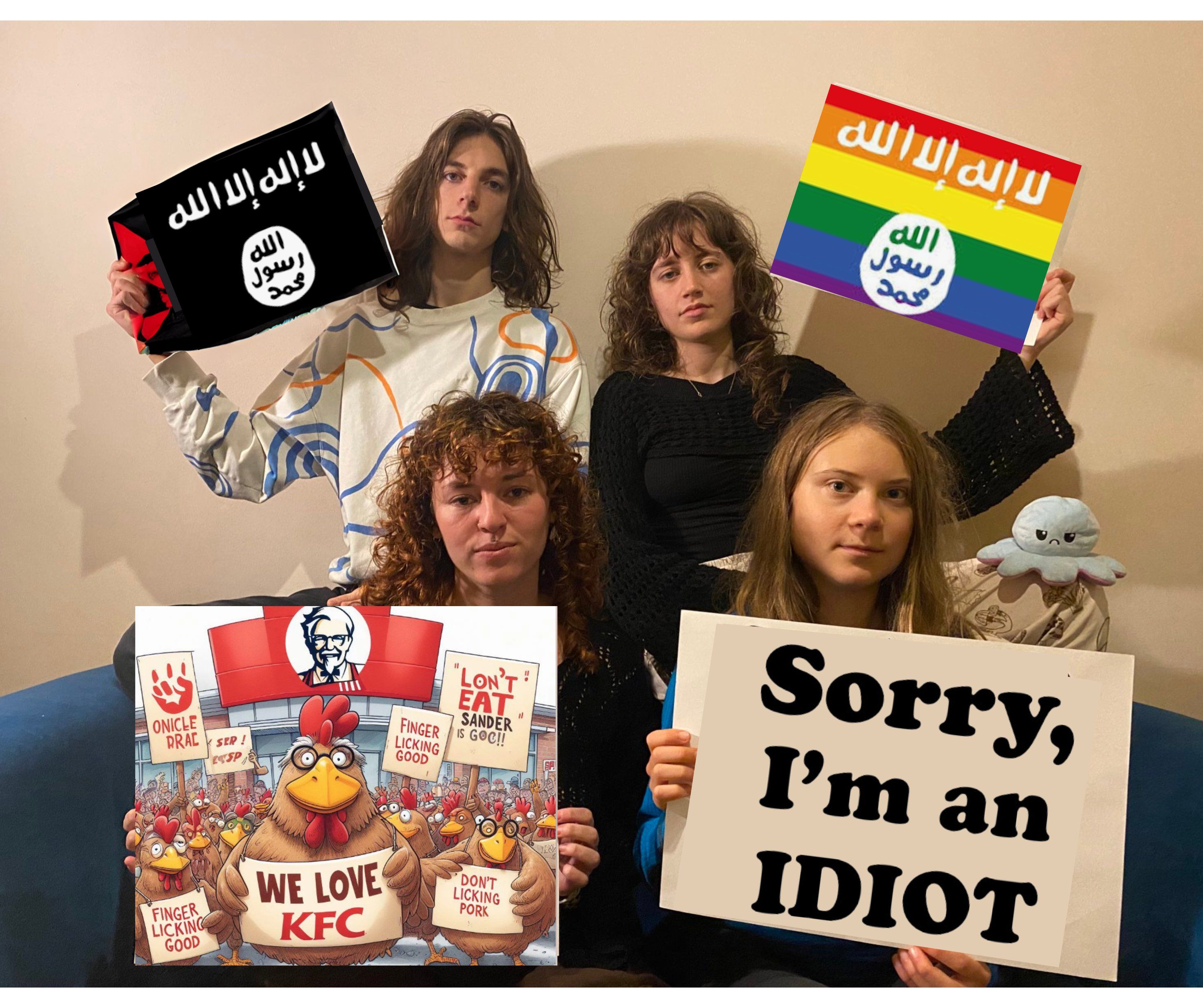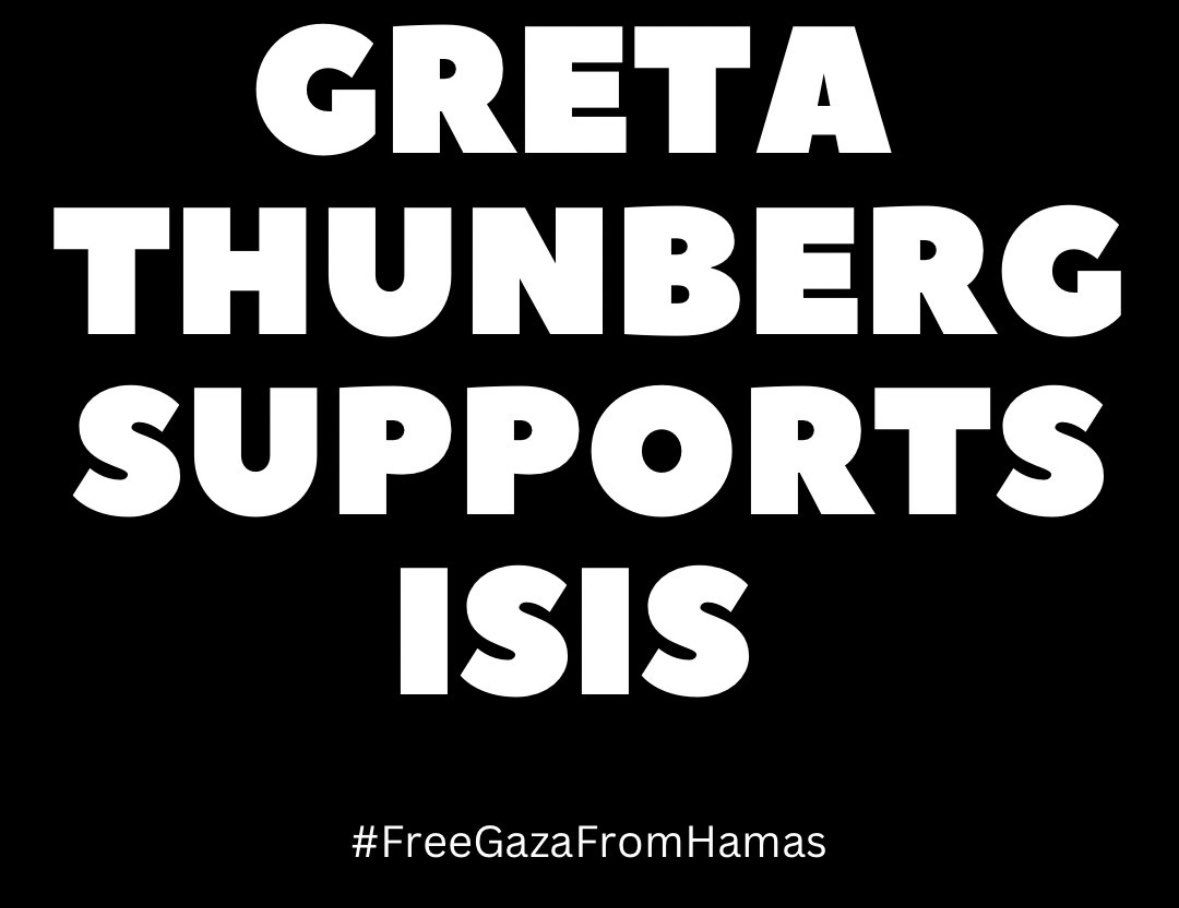 - "Грета Тунберг забула згадати, що ХАМАС убив, зґвалтував і обезголовив 1500 ізраїльтян. Це терористична організація, схожа на ІДІЛ, у статуті якої чітко згадується вбивство всіх тих, хто не є мусульманами, і вони є єдиною причиною страждань як у Газі, так і в Ізраїлі";