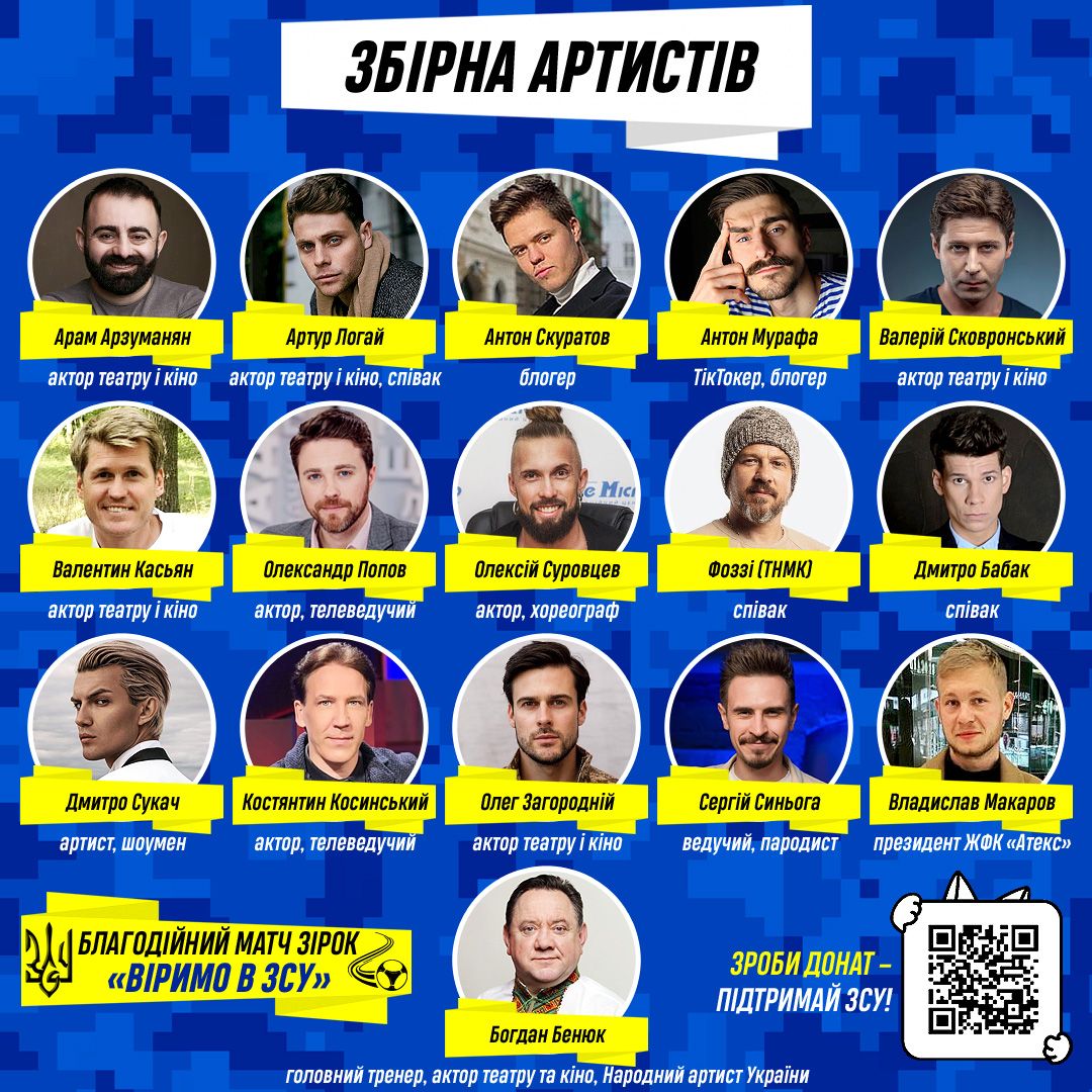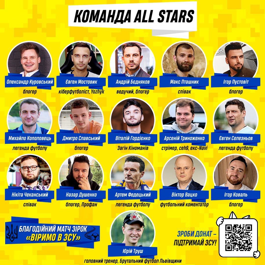 Хто вийшов на поле благодійного матчу "Віримо у ЗСУ"