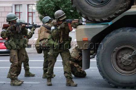 Згодом з'явилися повідомлення, з яких зрозуміло, що невідомі люди в камуфляжі оточили, окрім штабу ПВО, такі будівлі: