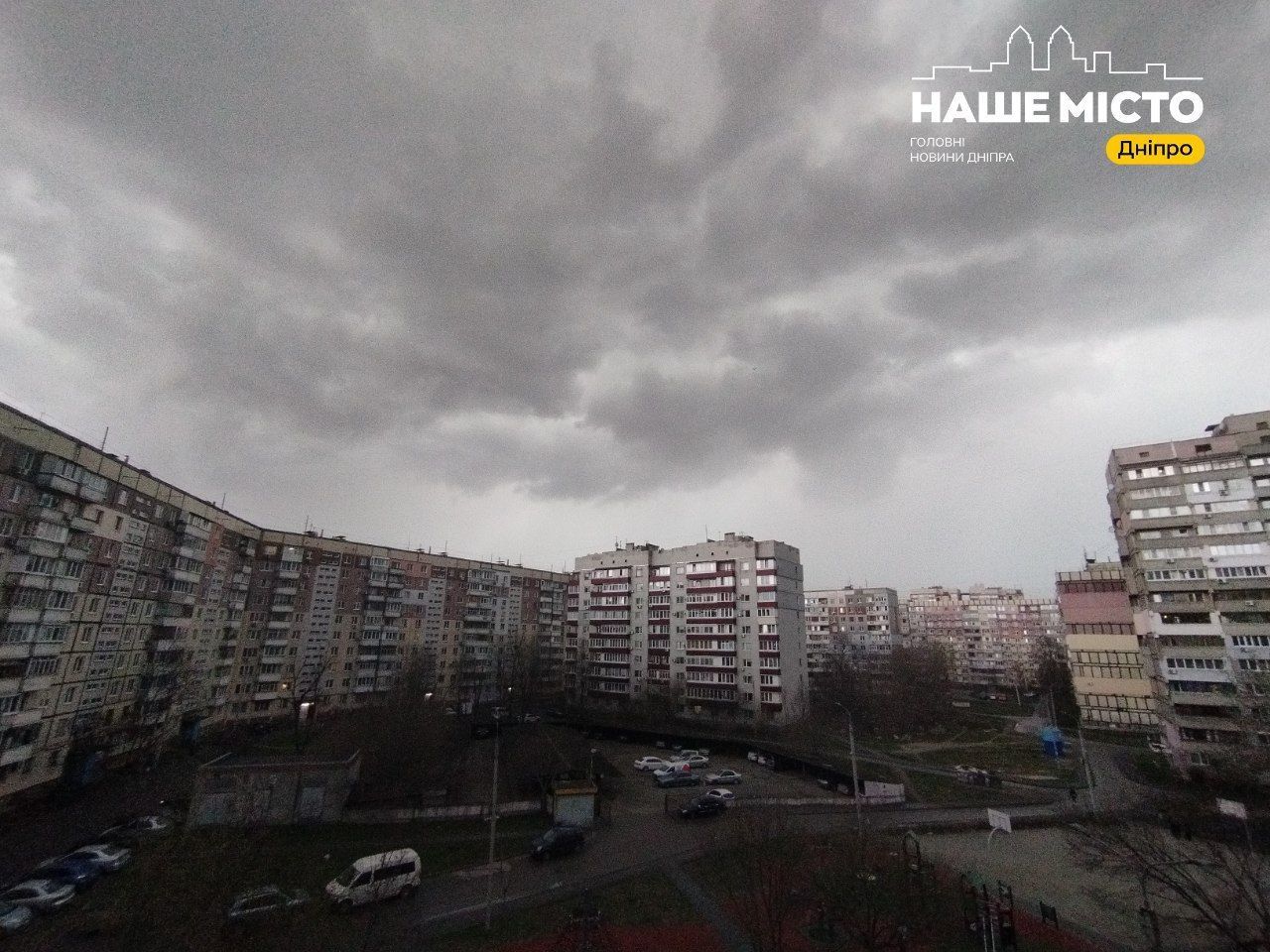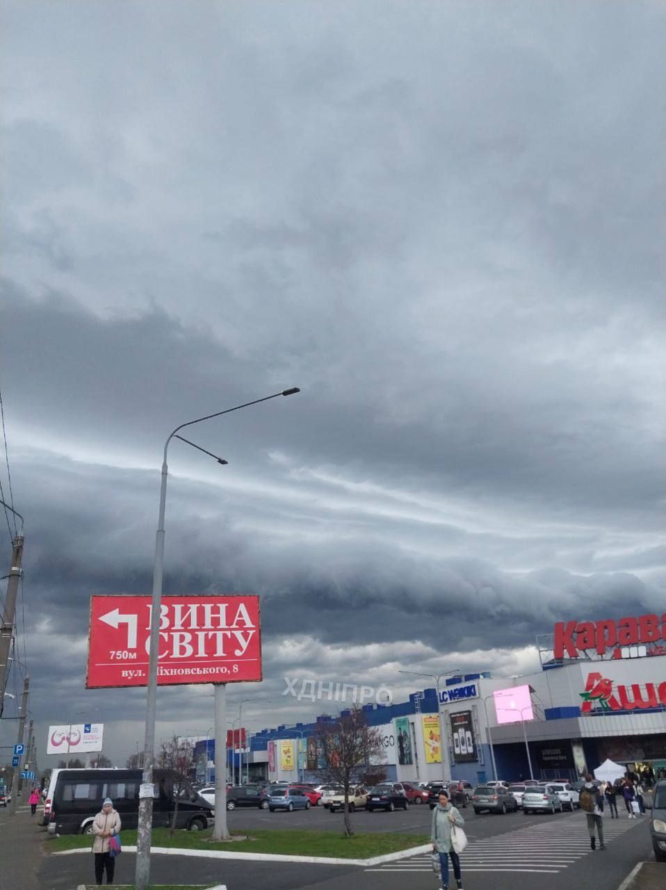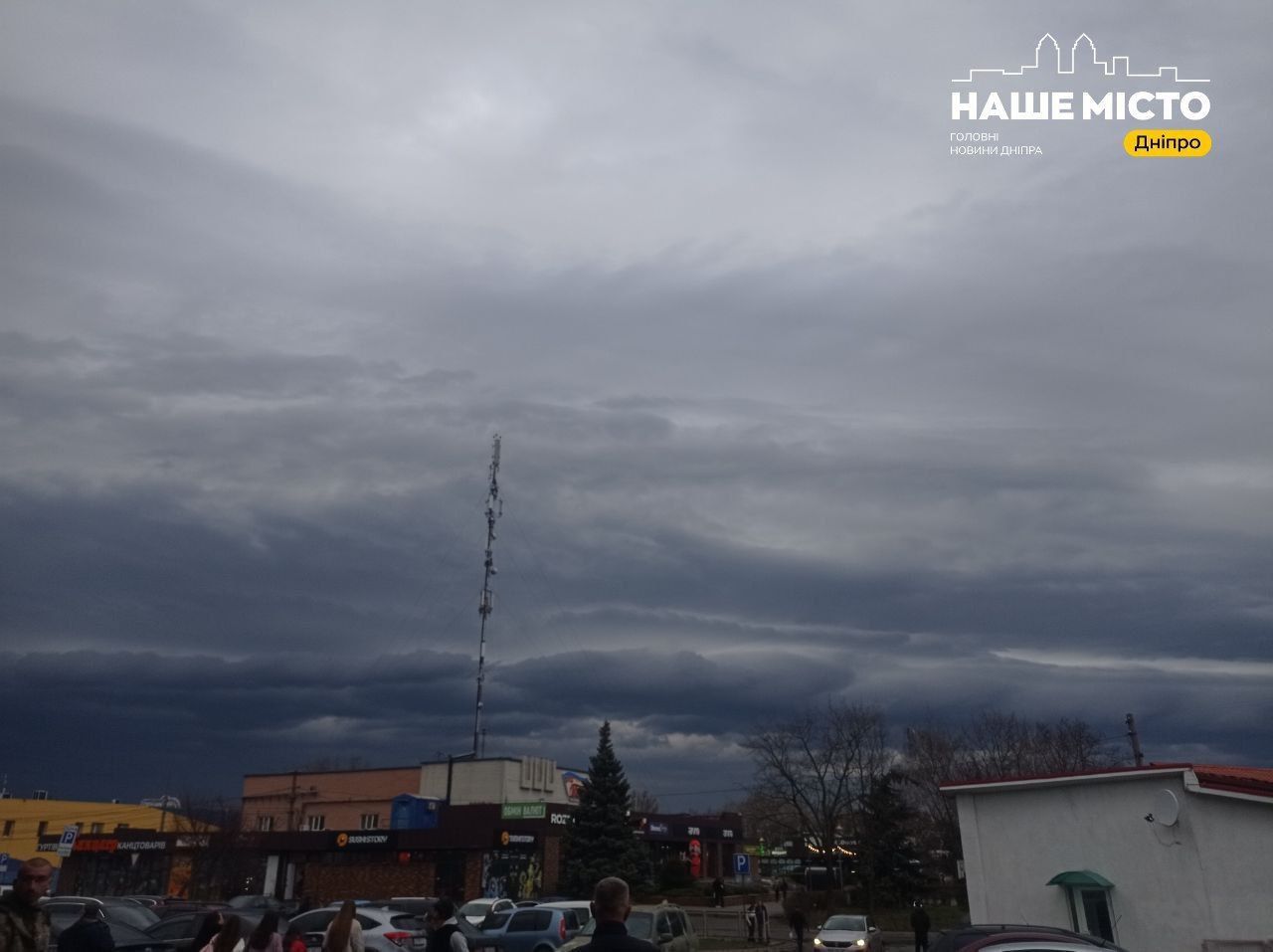 Удень 29 березня місцеві жителі Дніпра публікували в мережі фото негоди, що наближалася до міста. На нього суцільною стіною сунули темні хмари.