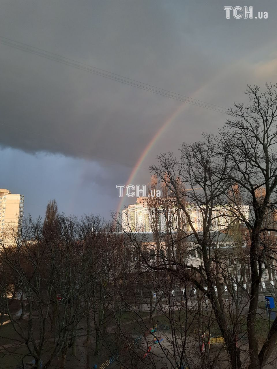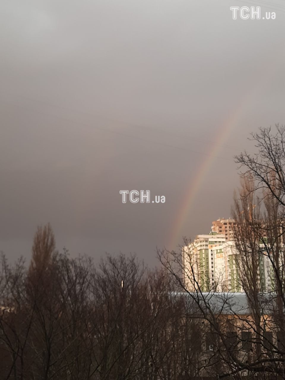 Однак після потужної негоди жителі деяких районів столиці мали змогу спостерігати веселку.