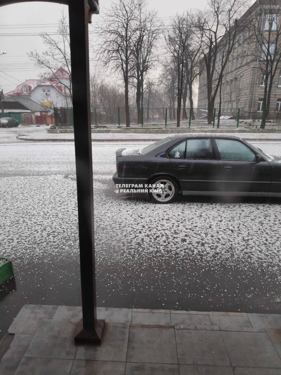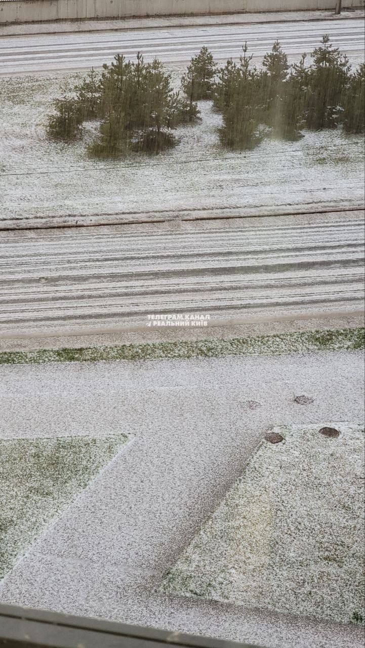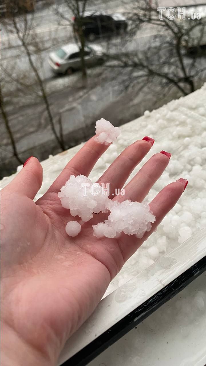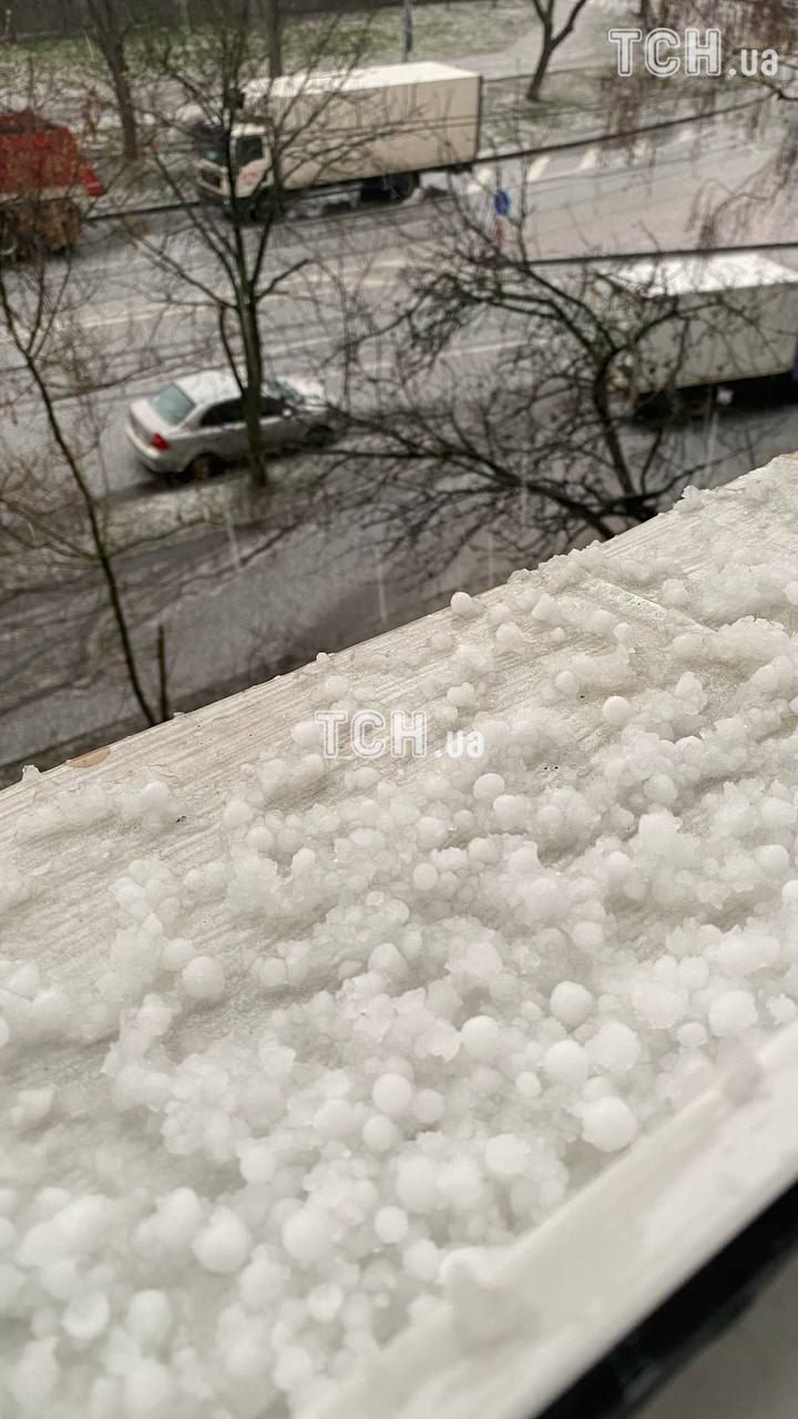 Столицю засипало льодяними горошинами, які інколи сягати кількох сантиметрів у діаметрі.