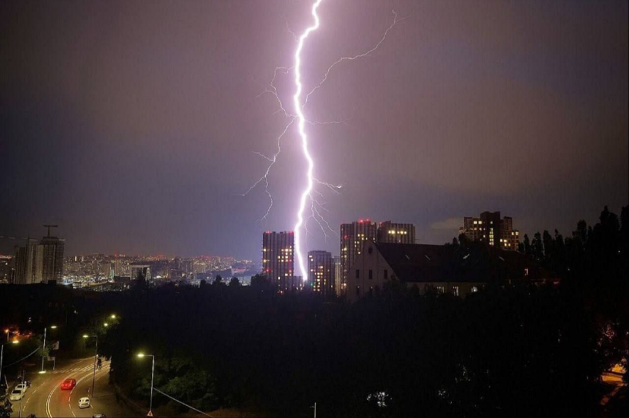 Зауважимо, що оприлюднені кадри водночас заворожують і лякають. Блискавки продовжують розривати столичне небо. Вони яскраво спалахують одна за одною. Знову і знову.