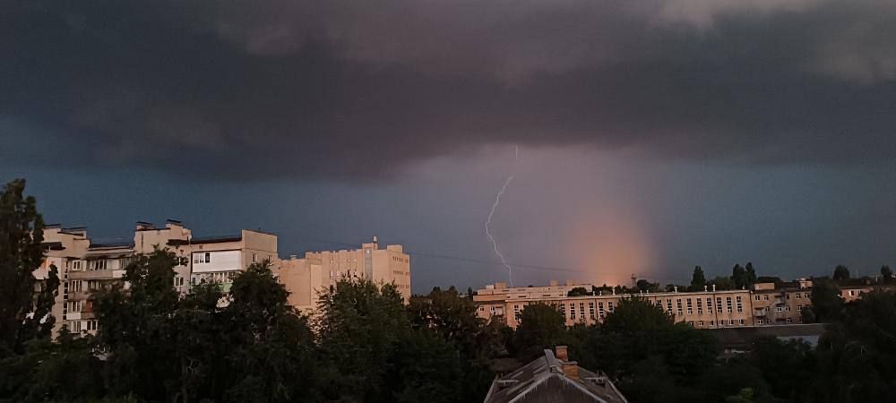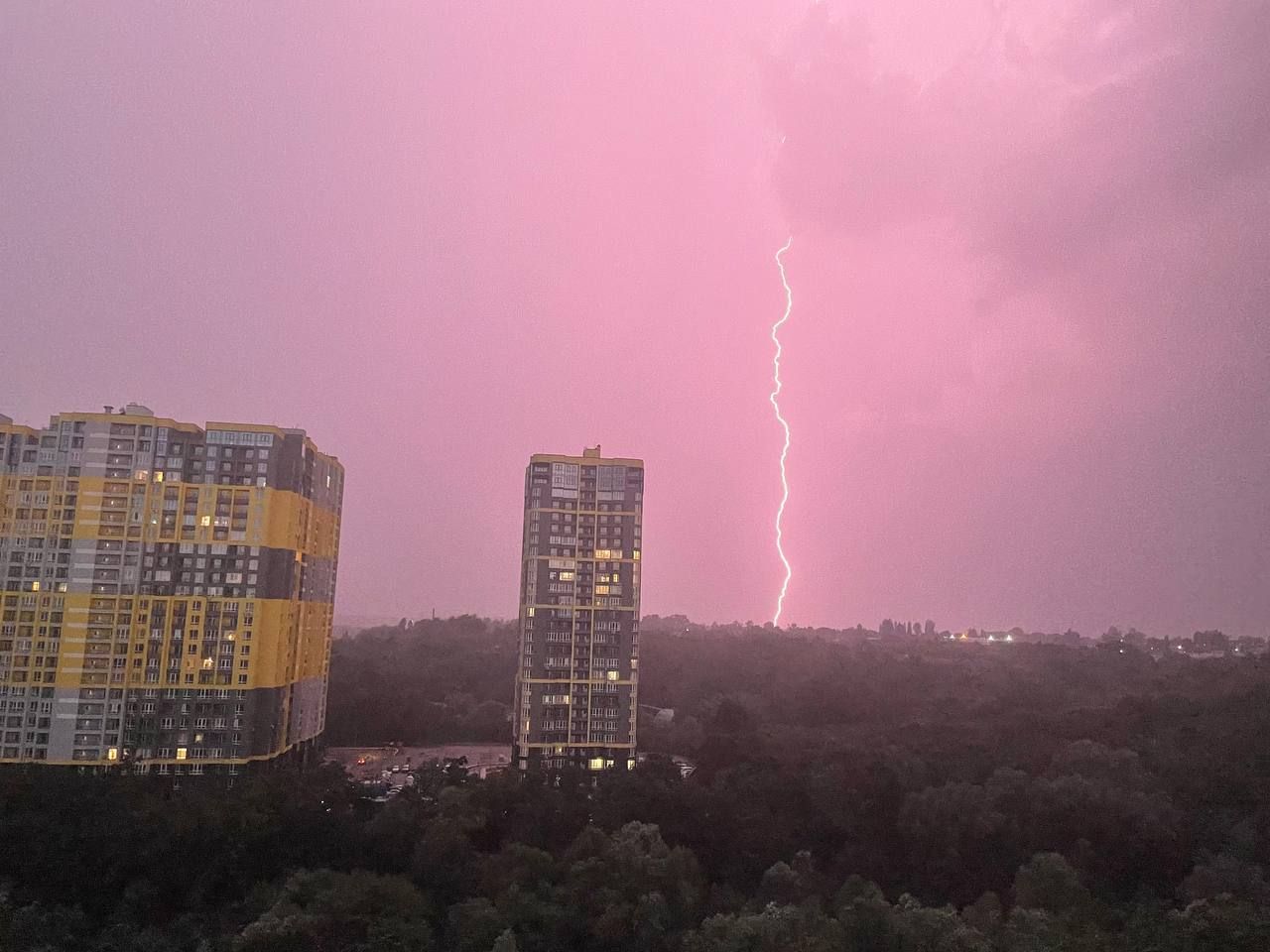 Згодом у Києві почалася потужна злива, яку супроводжували шквальний вітер та блискавки що спалахували одна за одною.
