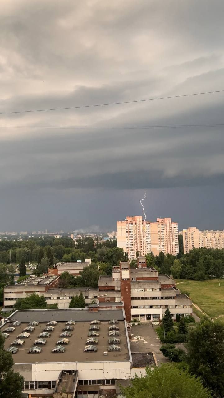 Спершу на столицю та область насувалися темні хмари і раз за разом спалахували блискавки. У мережі очевидці показали, як це було.
