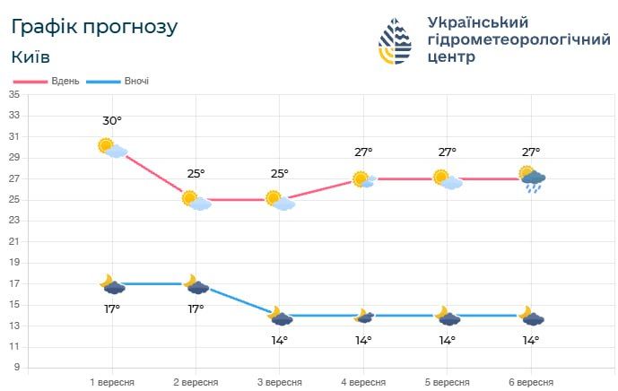 Погода на перший тиждень вересня в Києві / Інфографіка Укргідрометцентру