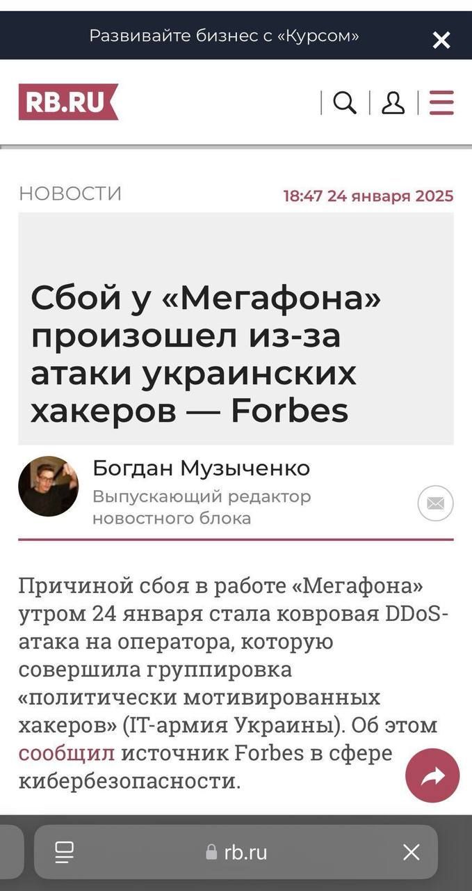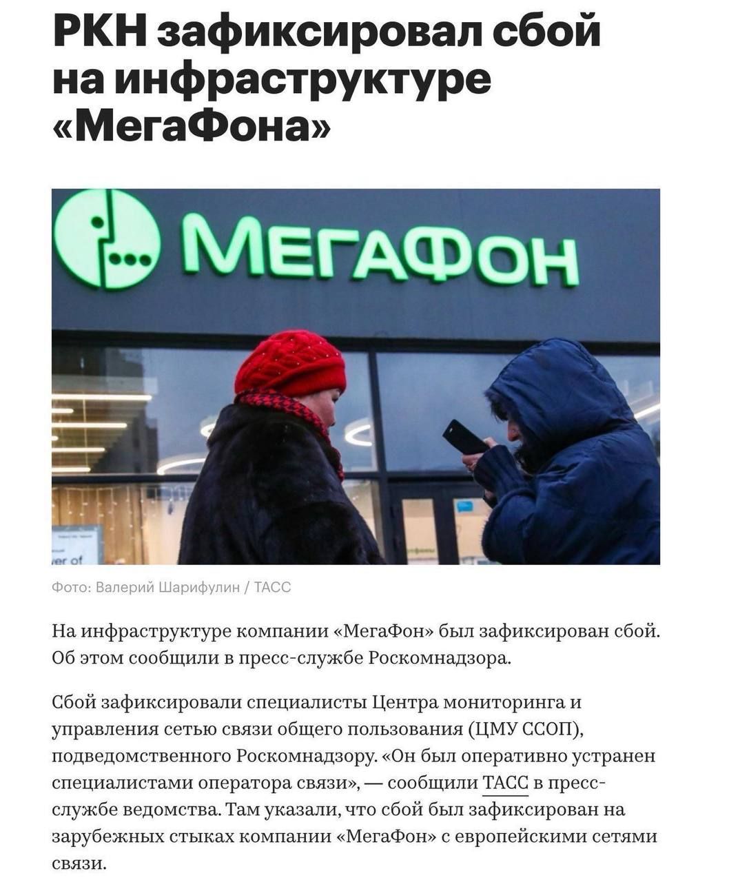 Згодом російські медіа назвали справжню причину відсутності зв’язку та інтернету – "результативная ковровая DDoS-атака на МегаФон". В самій компанії заявили, що їхня мережа нібито працює "штатно", але додали, що можливі проблеми з доступом відбуваються через незалежні від компанії причини.